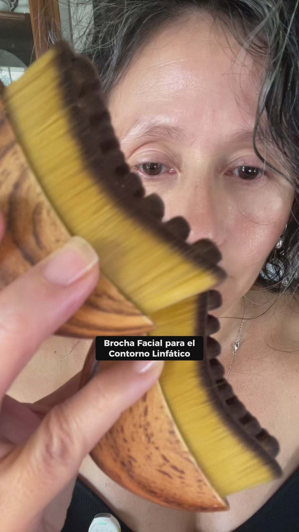 Inspirado en tratamientos clínicos avanzados, nuestra Brocha de Drenaje Linfático trabaja en armonía con tu piel para mover suavemente el líquido retenido que genera la apariencia de hinchazón en cara y cuello.